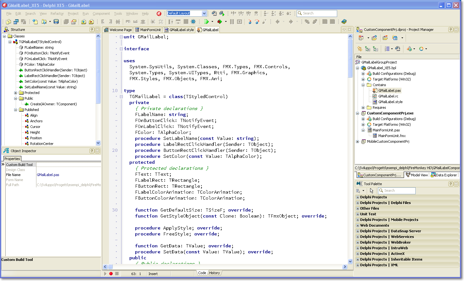 Per la mia sessione “FireMonkey e gli stili: hands on” di ITDevCon 2013, ho preparato alcuni esempi pratici. Uno di questi esempi consiste nel creare un nuovo componente visuale (derivato da TStyledControl) con uno stile grafico che riproduce l’aspetto delle etichette GMail.